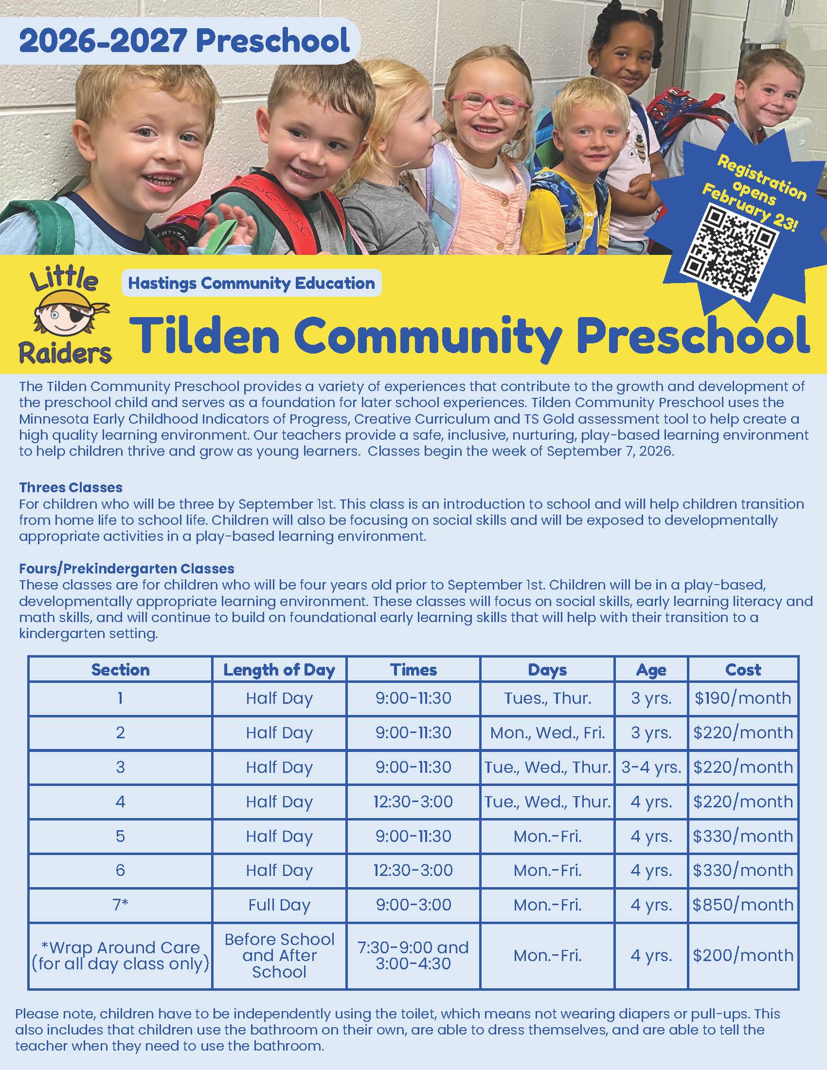 If you or someone you know has a preschool-aged child, we encourage you to explore this opportunity. We are proud to offer early learning experiences that help our Little Raiders build confidence and prepare for kindergarten.