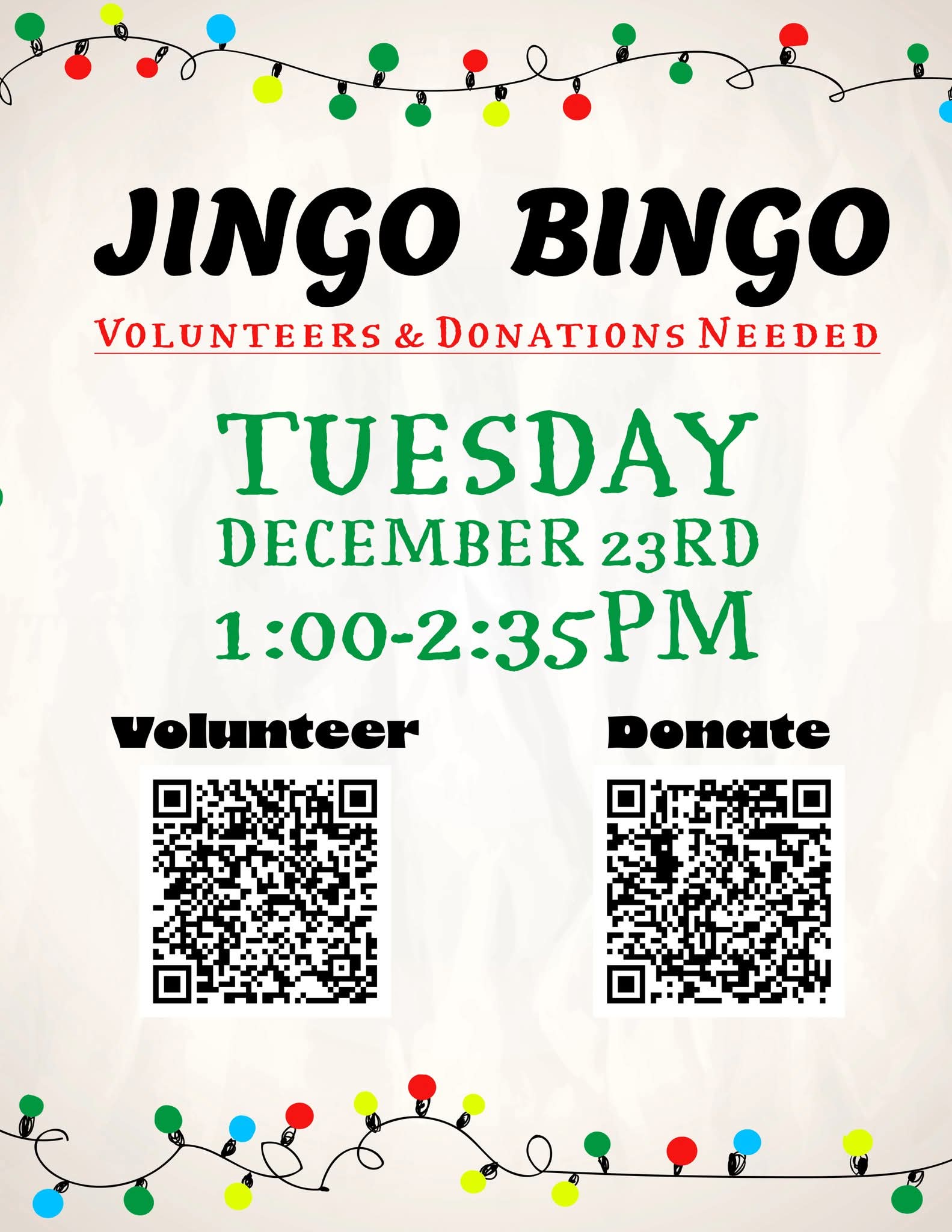 On Tuesday, December 23rd our Hastings Middle School will be doing Jingle Bingo for students! We are in need of parent/guardian donations. Thank you to all who have signed up to volunteer, our slots are filled!