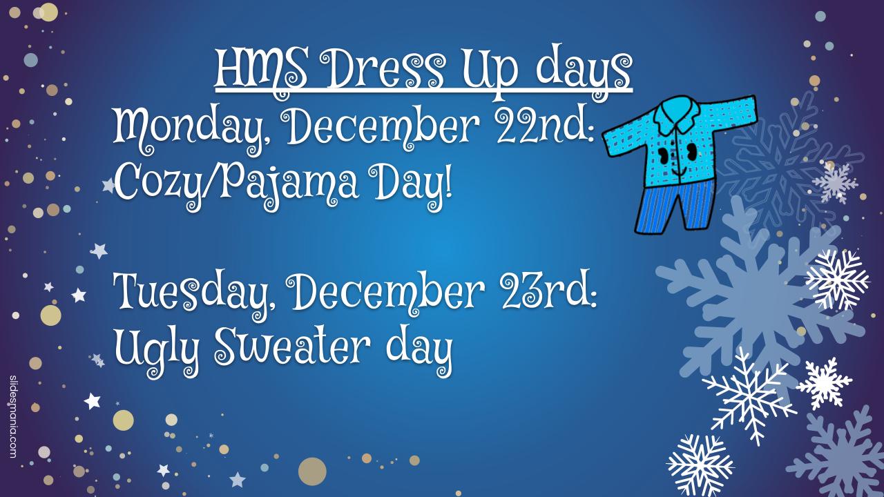 Student Council is excited to wrap up December with a couple of fun dress-up days next week as we head into Winter Break!