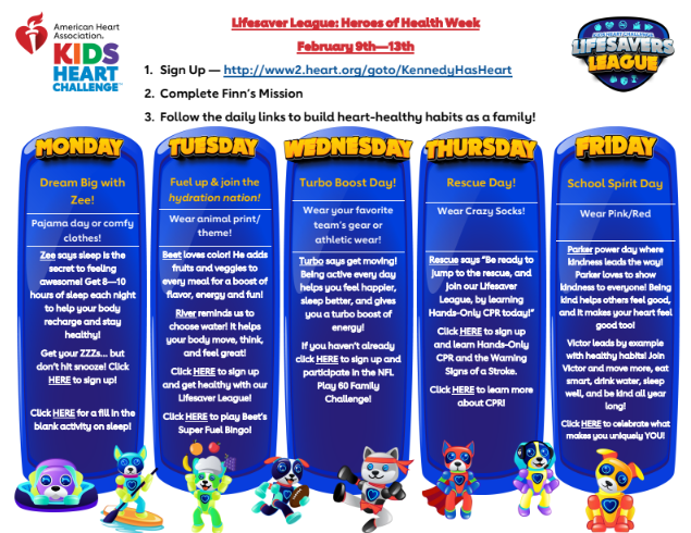 Let’s work together to create a community of lifesavers. Thank you for your support in helping us achieve this incredible goal! Our Heroes of Health week will be February 9th - 13th! Click HERE to see the fun week we have in store! |