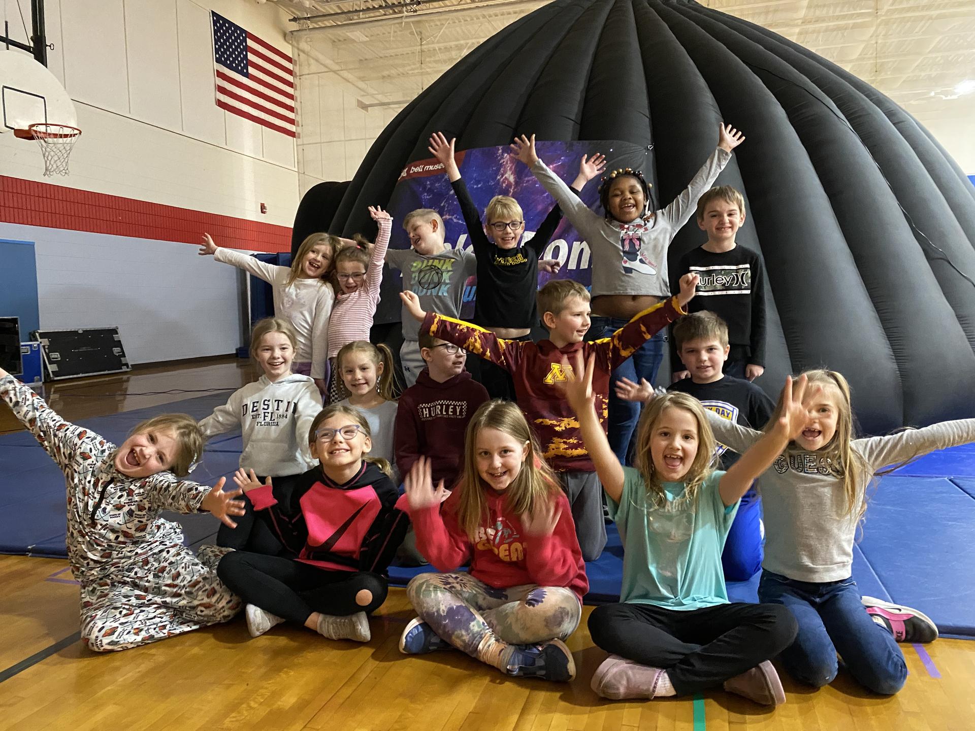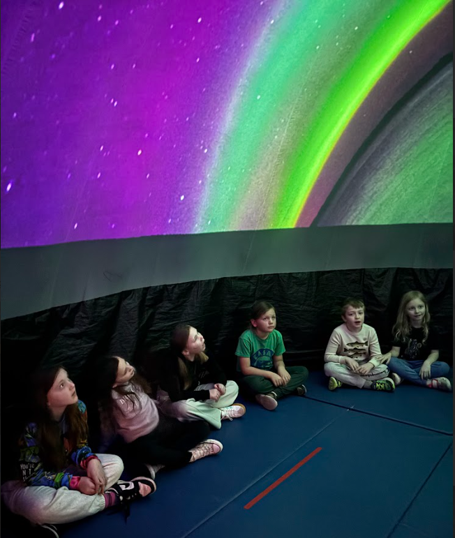 Second, third, and fourth grade students had the opportunity of experiencing the Exploradome courtesy of the Bell Museum and McAuliffe PTC. They learned about seasons, phases, and eclipses as well as how to make an observations about the sky, noticing constellations, planets, and the changing positions of the sun and moon. |