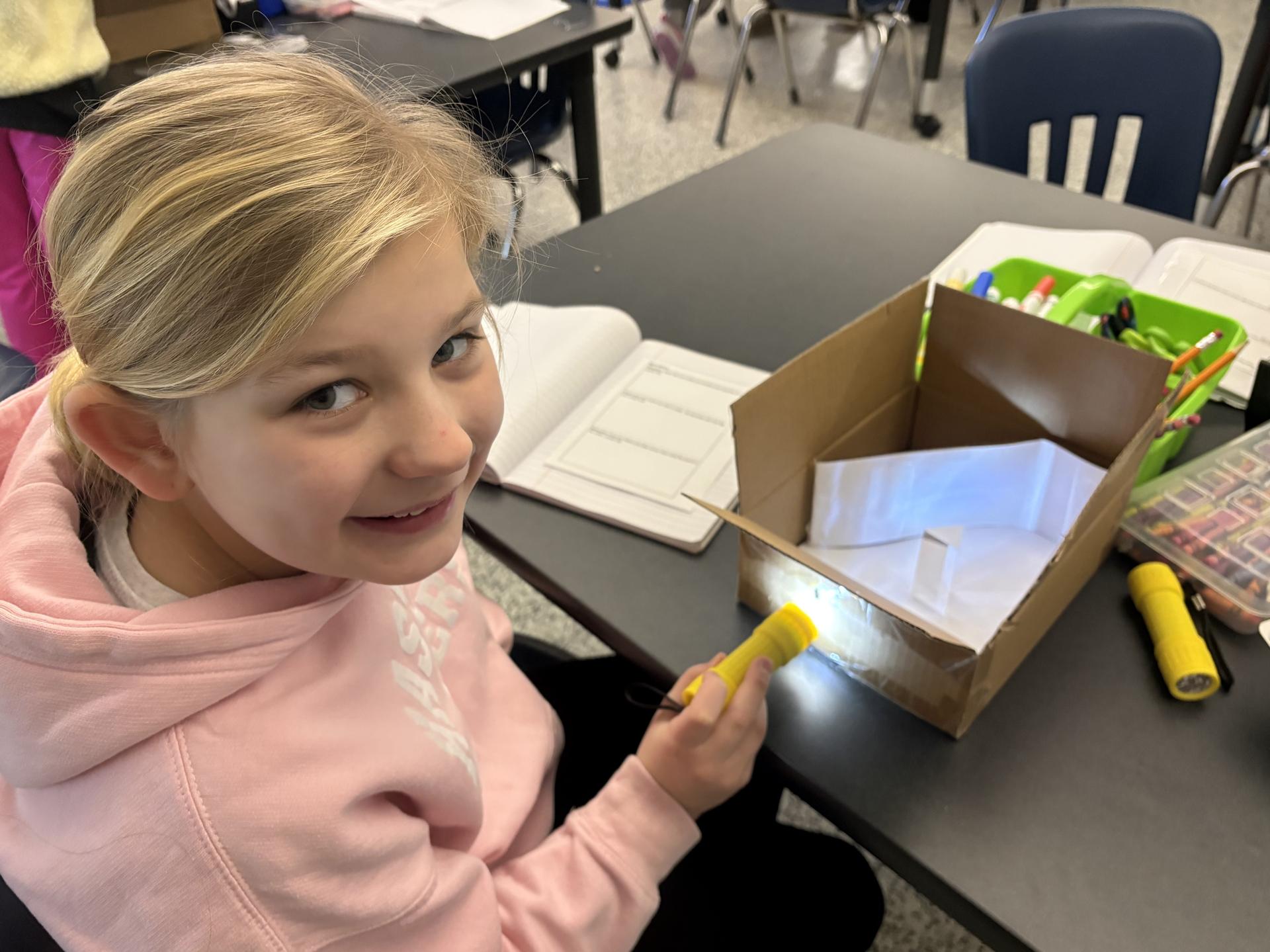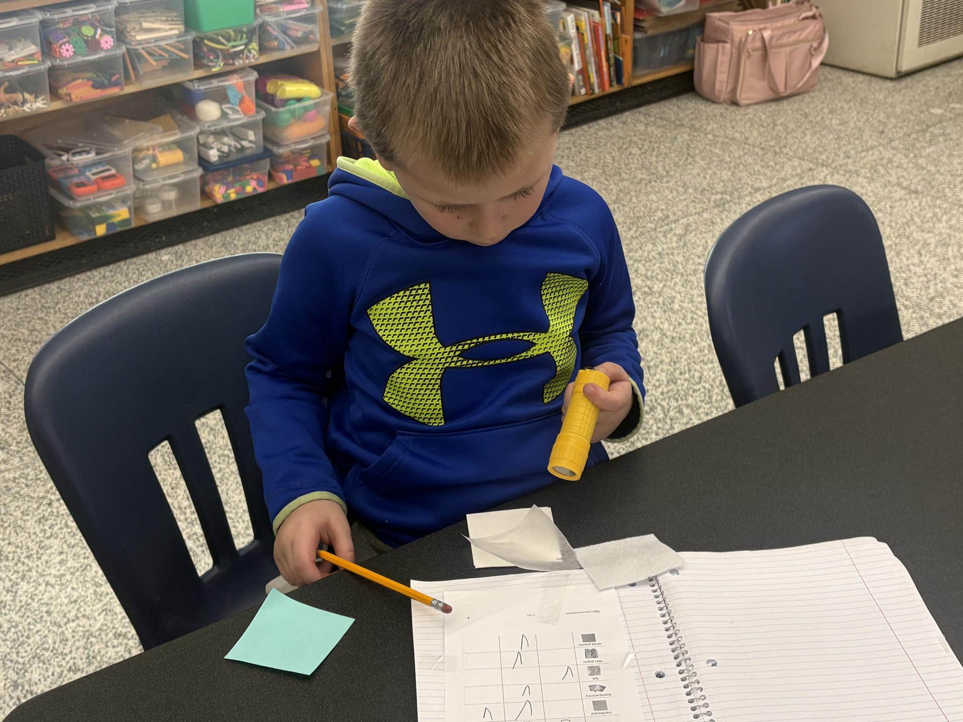 Fourth graders are currently in the middle of their newest subject: Color and Light Properties. Students have been experimenting with light and how it interacts with prisms, red/blue filters, and water. Students also had an opportunity to play with shadow shapes and sizes using a flashlight and legos. In February, we will continue this work with a light up challenge where students will be given materials to create a circuit and tasked with lighting up an LED bulb. We will then finish this unit with an introduction to Edison robots. Students will be learning how to program the robots and use these programs to experiment with Edison's light sensors. The light sensors are mounted on the bottom of the robot and students will be trying to determine what colors the robot can detect best and why. Once we have finished this testing, we will move on to our Winter Olympic challenges where students will be introduced to another robot, Dash.