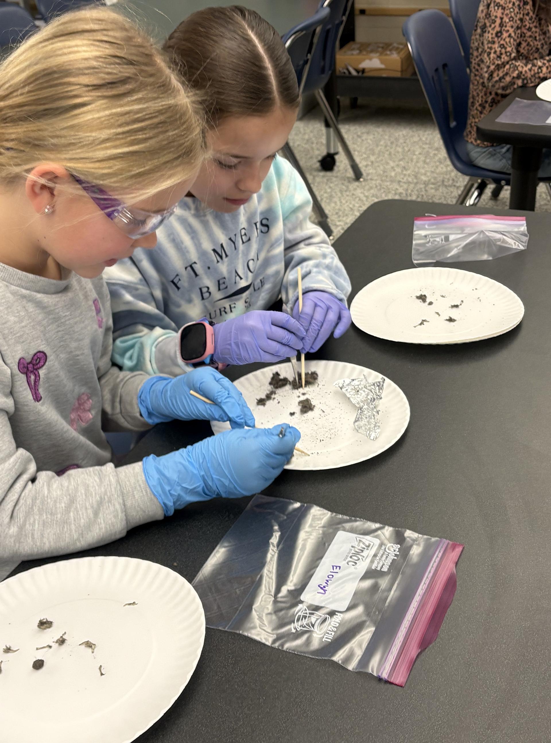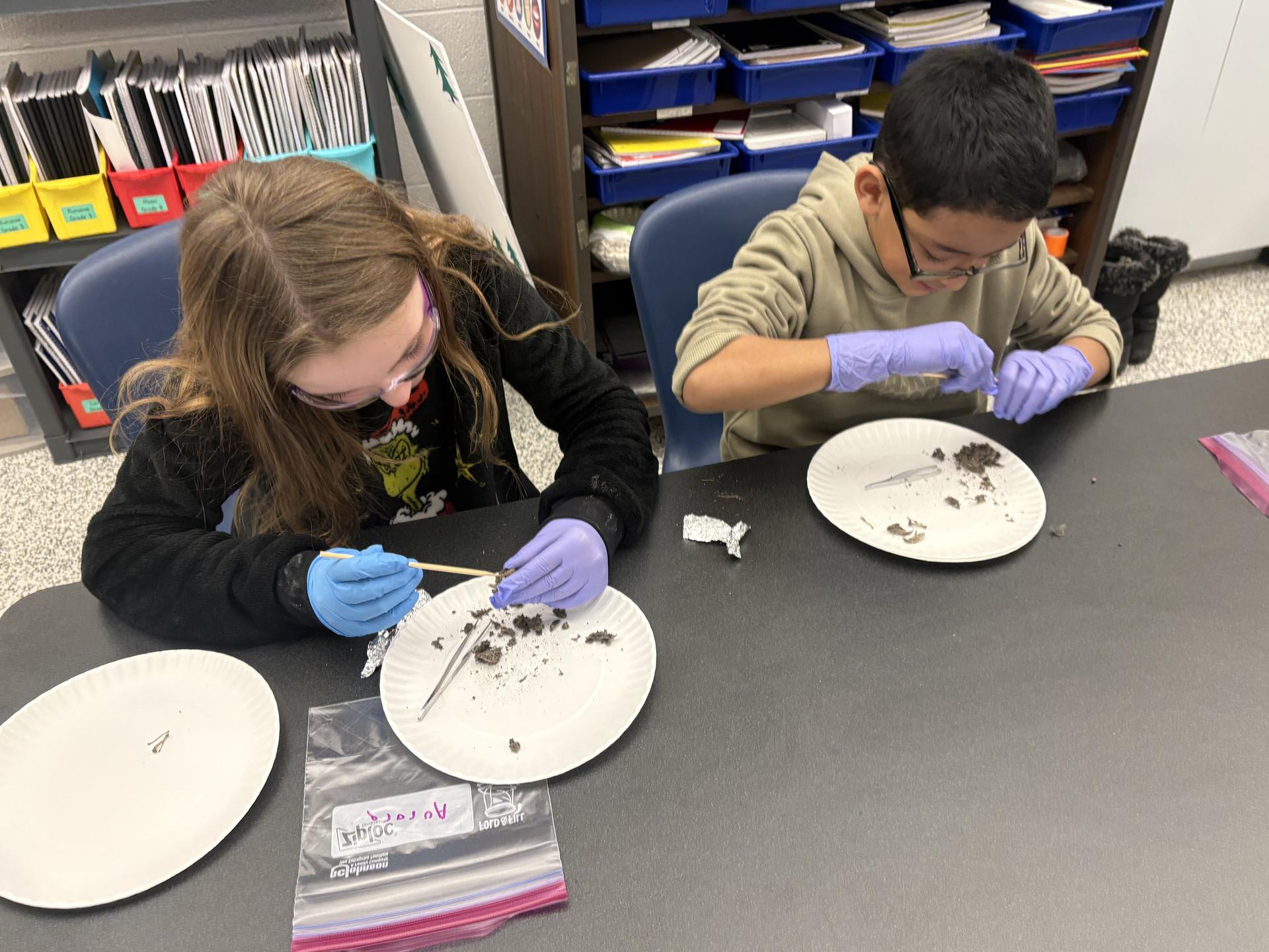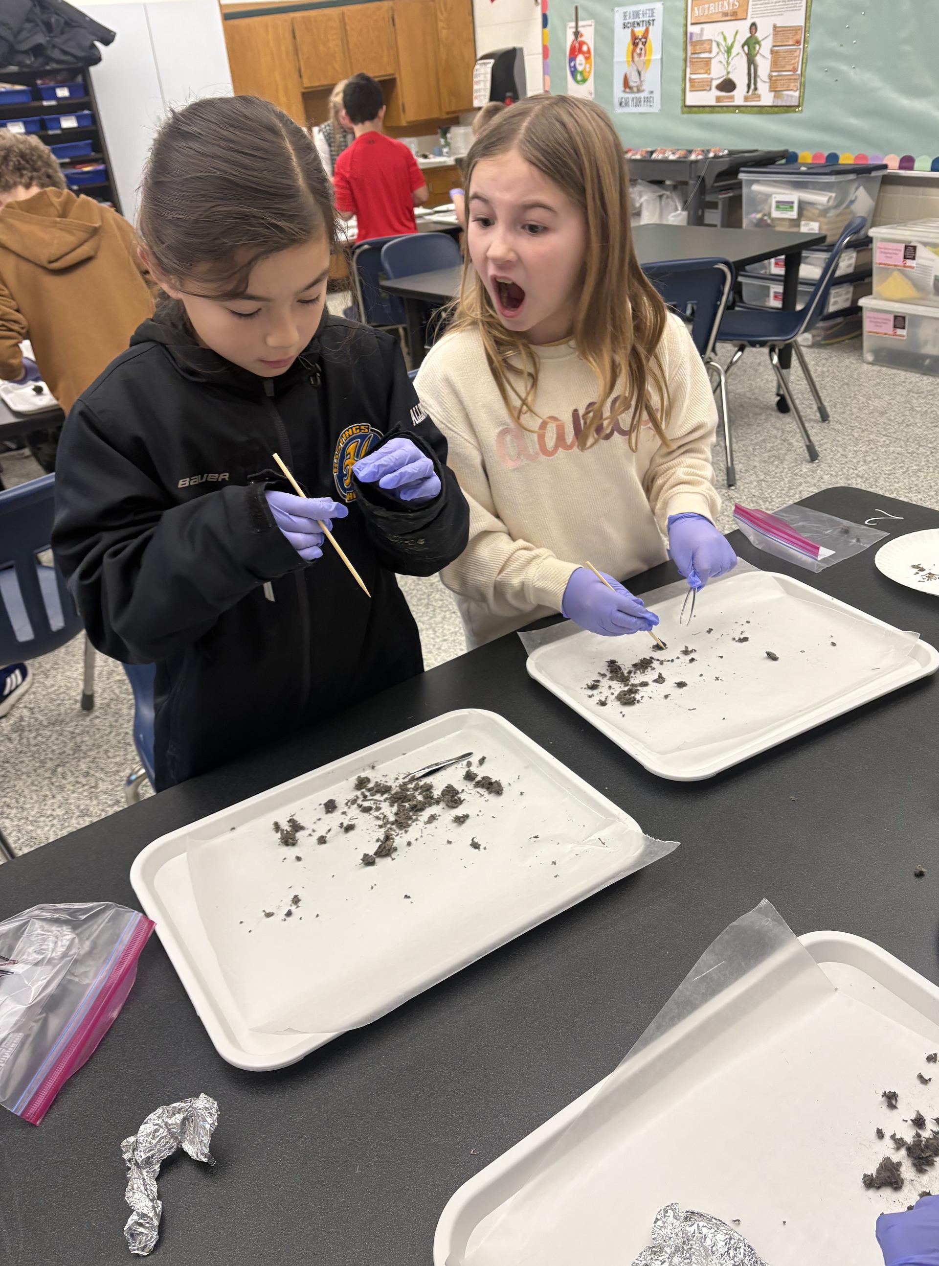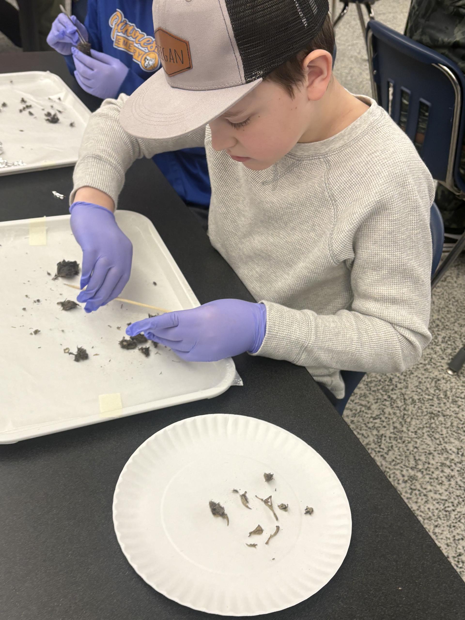 We spent the last half of January on our new project: Animal Traits. This unit began with students dissecting owl pellets and collecting the bones they found. Students then used a bone identification chart to determine what bones they found and what the owl had eaten. This dissection has been so engaging for students and it has been rewarding to hear the students become so excited over their discoveries. From wearing gloves, to using the tweezers, feeling like a real scientist was a common theme among all the third grade classes. We will spend time in February focusing on beak adaptations and learning to use a dichotomous key before moving on to our Winter Olympics challenges in curling, ski jump and slalom skiing.
