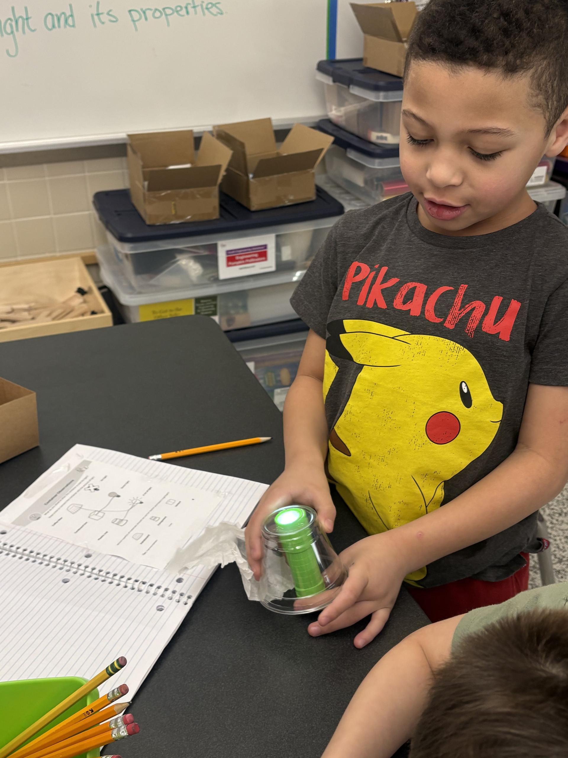 First grade then moved onto their next STEM unit, Engineering Nightlights. They were introduced to another first-grader, Yazmin, who is afraid of the dark and needs a nightlight. The problem is her cousin is visiting her and he likes to sleep in the dark, with only a little light. Students have been testing different materials to determine what is transparent, translucent or opaque. This project culminates in selecting the materials and building a nightlight that lights up only half of the room for Yazmin, and leaves the other half dark for her cousin. We will then test our nightlights and improve them before moving on to the Winter Olympic challenges.