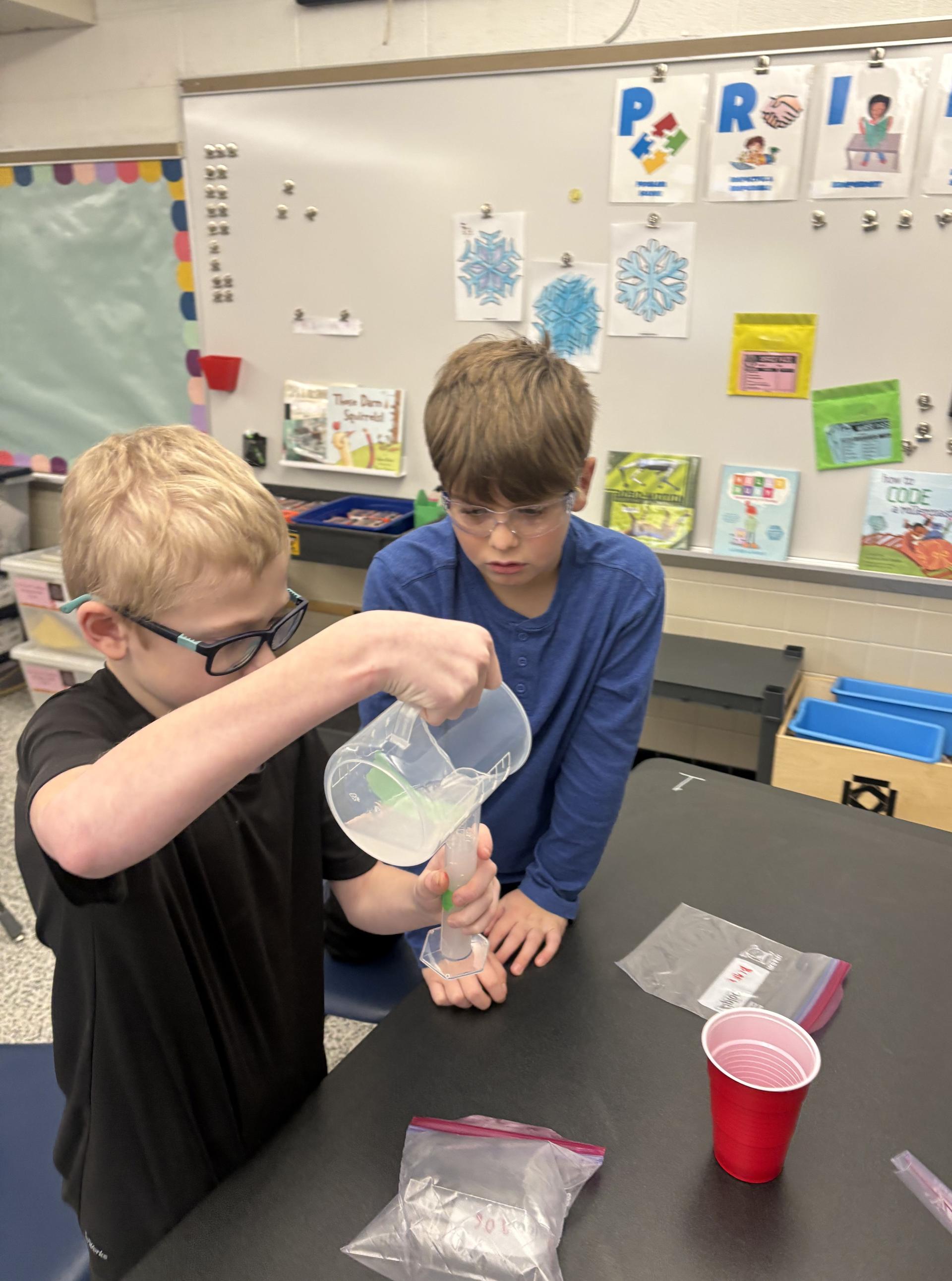 We are finishing up January having started our new STEM unit, creating slime. Students are currently working on the second of three recipes we will be using to make slime. Once a recipe is made, students then test their slime for elasticity, stiffness and shape retention. Students will finish this project by reviewing their testing results and recreating their best slime recipe. This work is intended to introduce students to the field of chemical engineering. Through creating and testing slime, students step into the role of chemical engineers, experimenting with materials to see how they change and interact. We will be making our last two recipes in February before moving on to our Winter Olympic adventures!